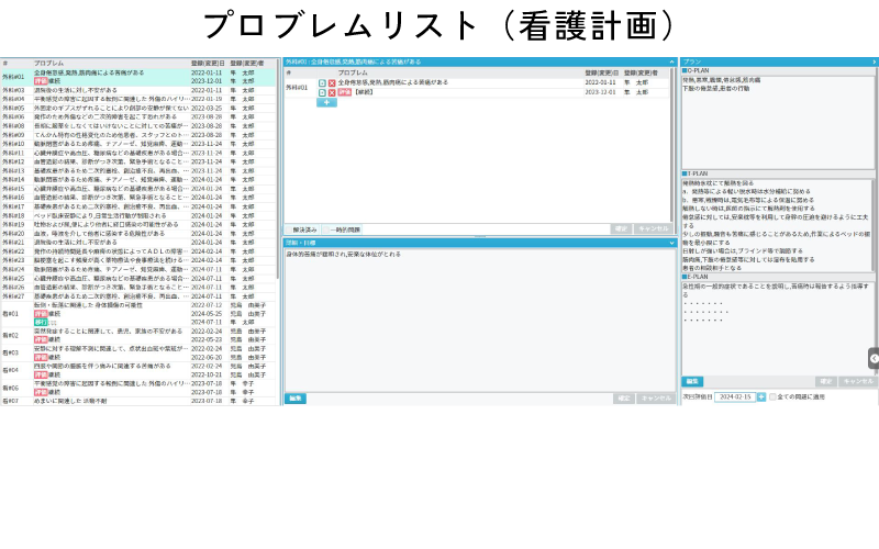 「診療歴一覧」「過去のカルテ」「現在のカルテ」を1つの画面に表示させることで、画面の切り替えを最小限にし、集中して業務に取り組んでいただけるようにしています。