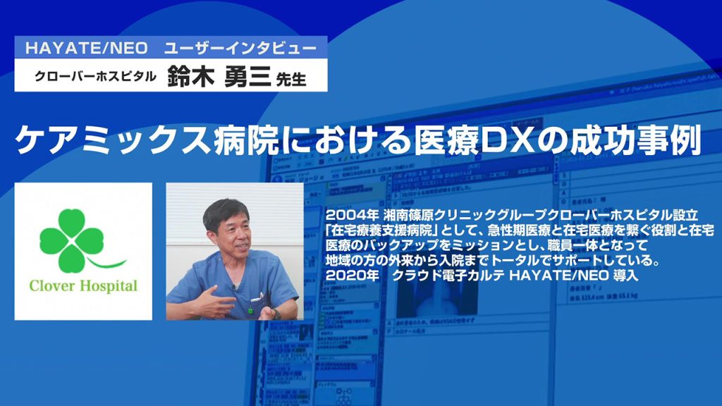 HAYATE/NEO専用のクラウド環境にてサービスの提供を行うことで、安心で安全な利用環境をご提供します。患者情報やカルテ記事などの個人情報は、病院側のPC端末上に残さず全てクラウド上に保存されることで、情報漏えいのリスクを最小限に抑えます。