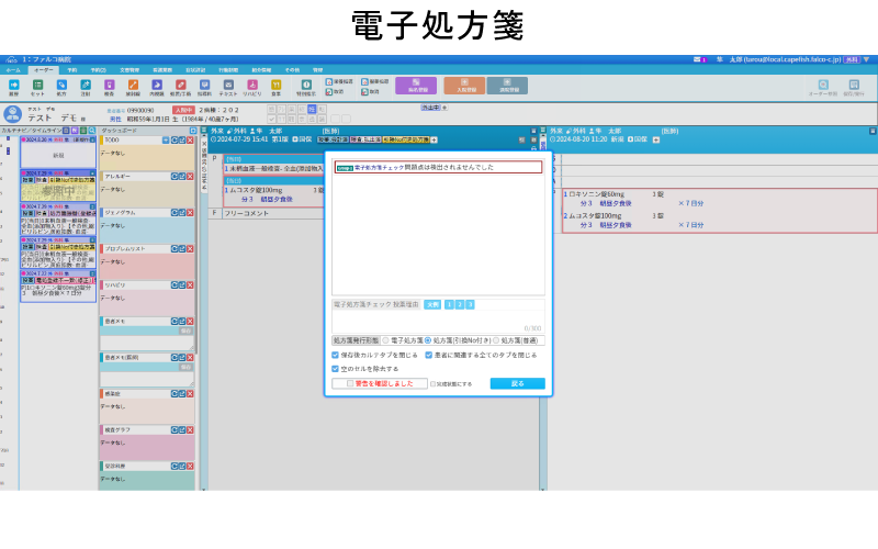 電子カルテ導入後の診察の一連の流れ(受付⋅診察⋅処置⋅検査⋅画像⋅会計)をイメージし、テスト患者でリハーサルを行います。